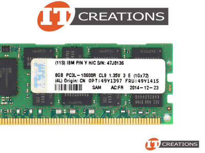 IBM 8GB PC3L-10600R DDR3-1333 REGISTERED ECC 2RX4 CL9 240 PIN 1.35V LOW VOLTAGE MEMORY MODULE (47J0136)