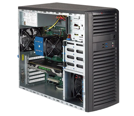 The Supermicro SuperWorkstation 5039C-T is one of Supermicro’s entry-level systems with support for a single processor and 64GB of memory. It’s designed for AutoCAD and light 3D rendering. This system is also compatible with Nvidia’s professional Quadro GPUs for increased performance rendering complex shapes.